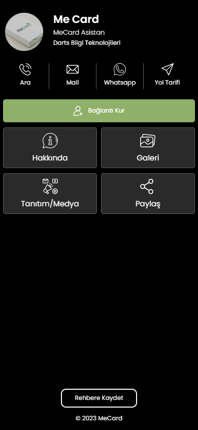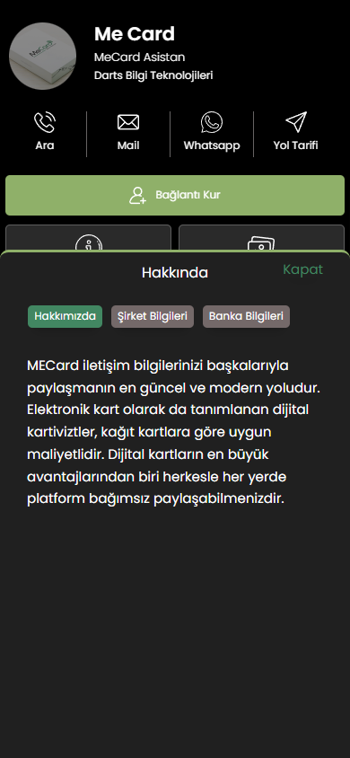 Bu bilgiler sayesinde, MeCard dijital kartvizitinizi tamamen kişiselleştirerek, profesyonel ve kişisel bilgilerinizi etkili bir şekilde paylaşabilirsiniz.