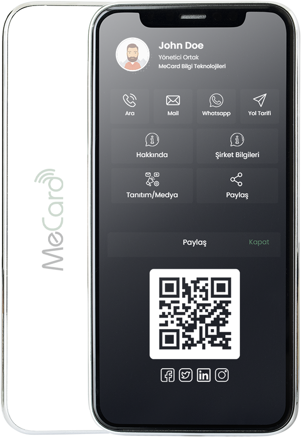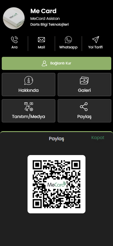 Karekod ve Temassız bağlantı özelliğyle platformlarda MeCard profilinizi çok hızlı bir şekilde paylaşabilirsiniz.